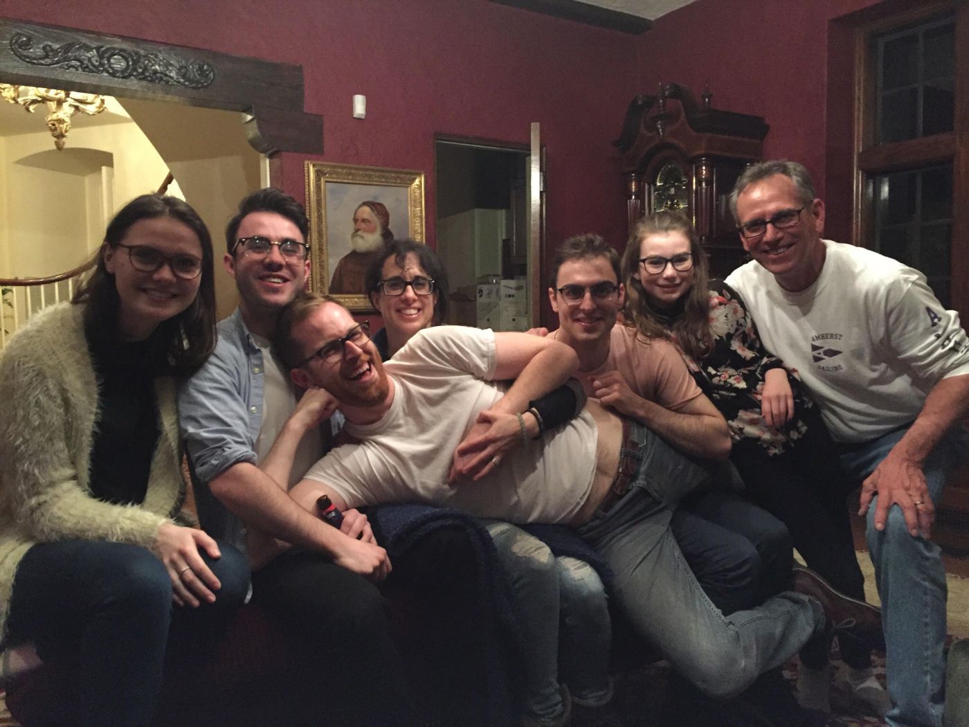 This photo was taken at Stoner drive, the night of Tom’s funeral. After everyone sharing some of their fondest memories of Tom, the family adjourned to a room to further bond over their loss, and a group of bespectacled relatives united for a picture.